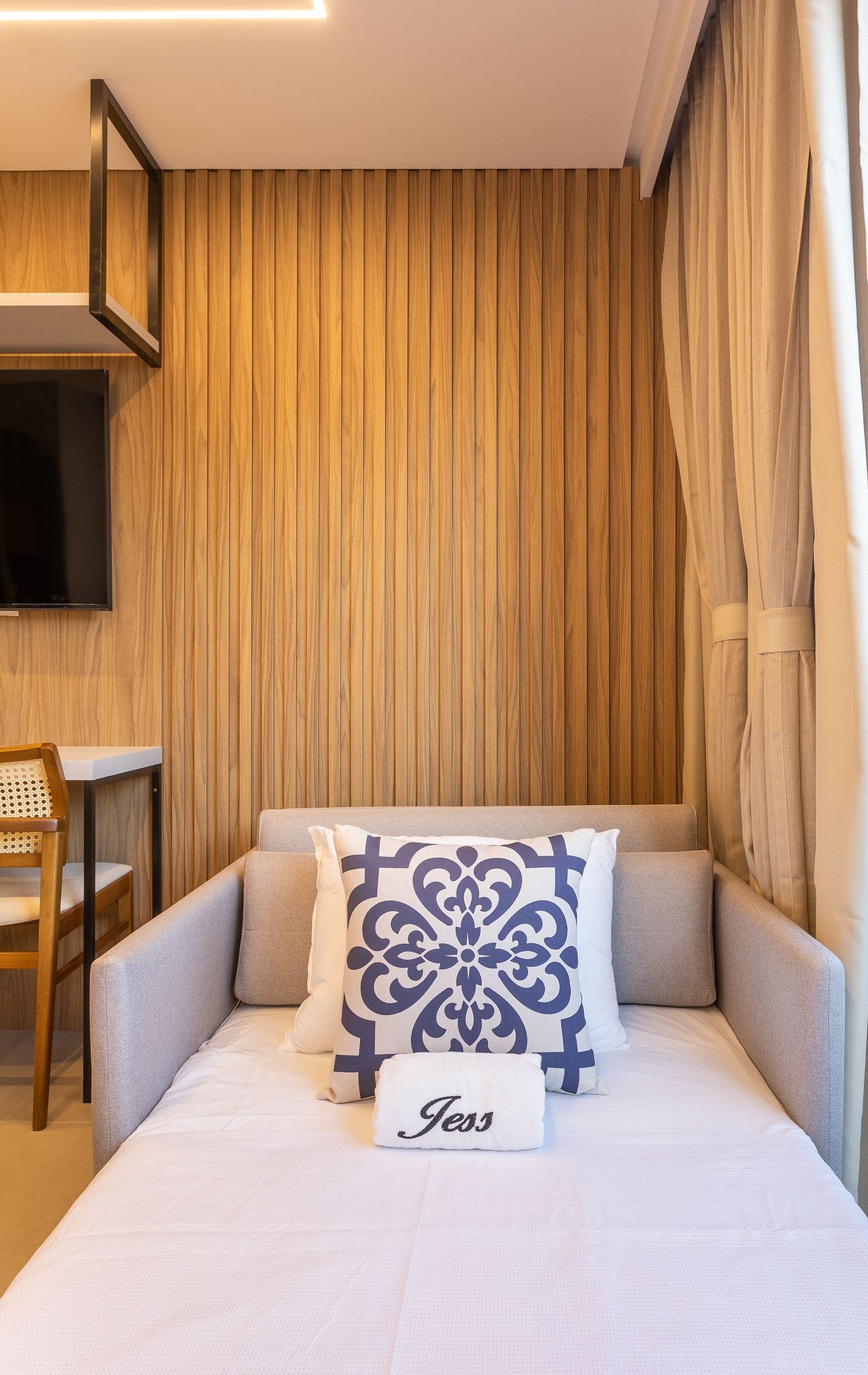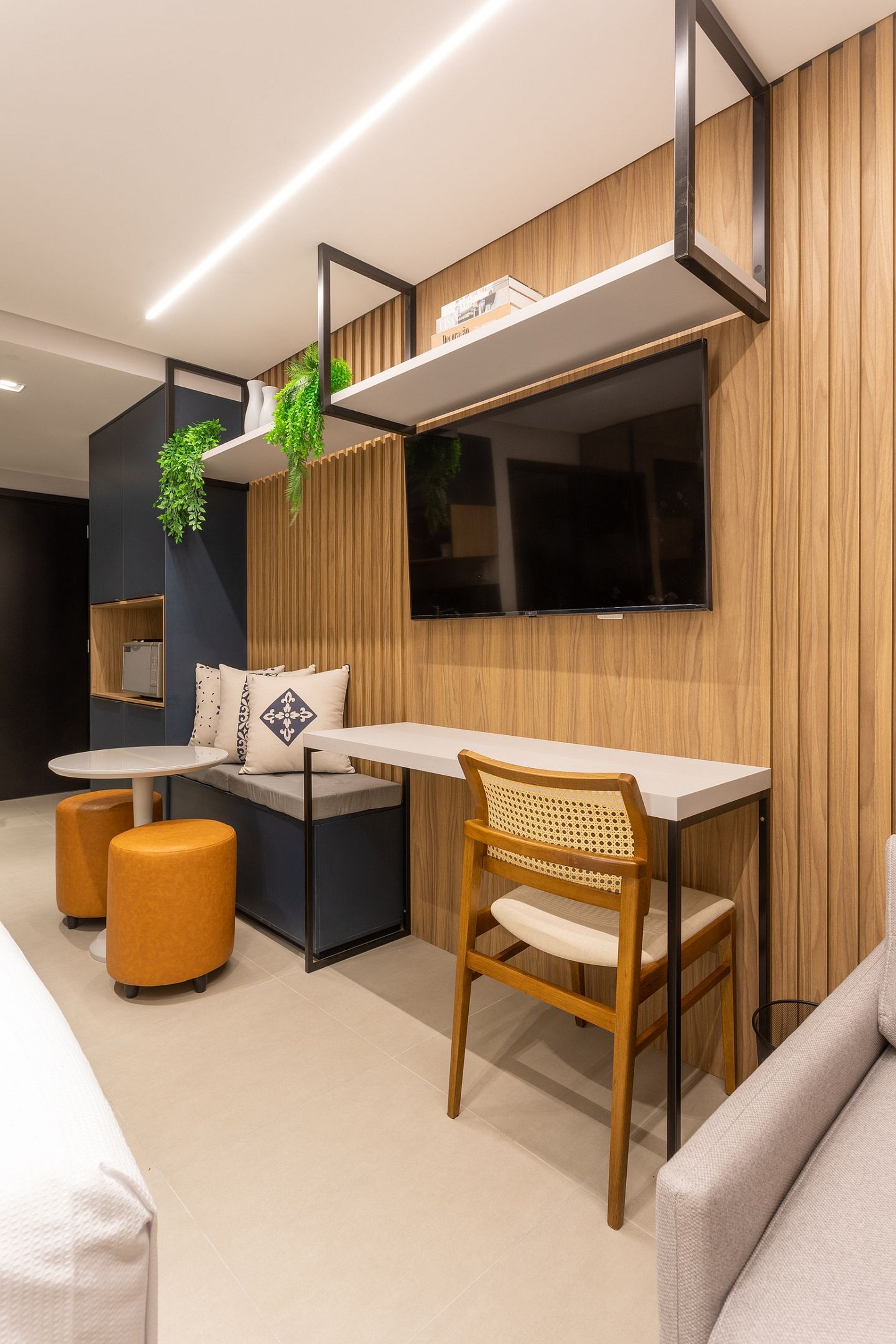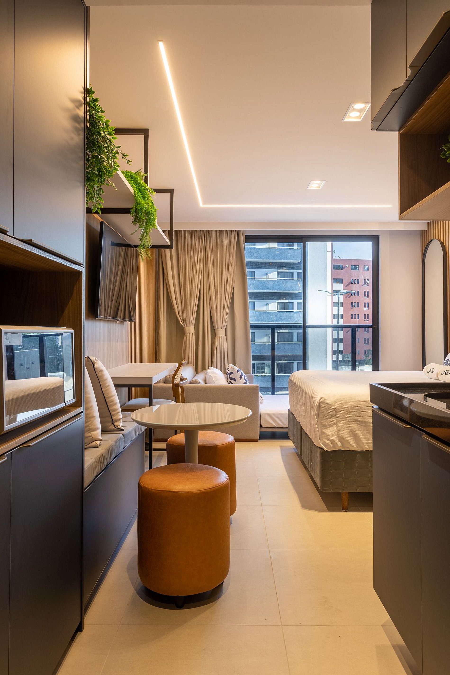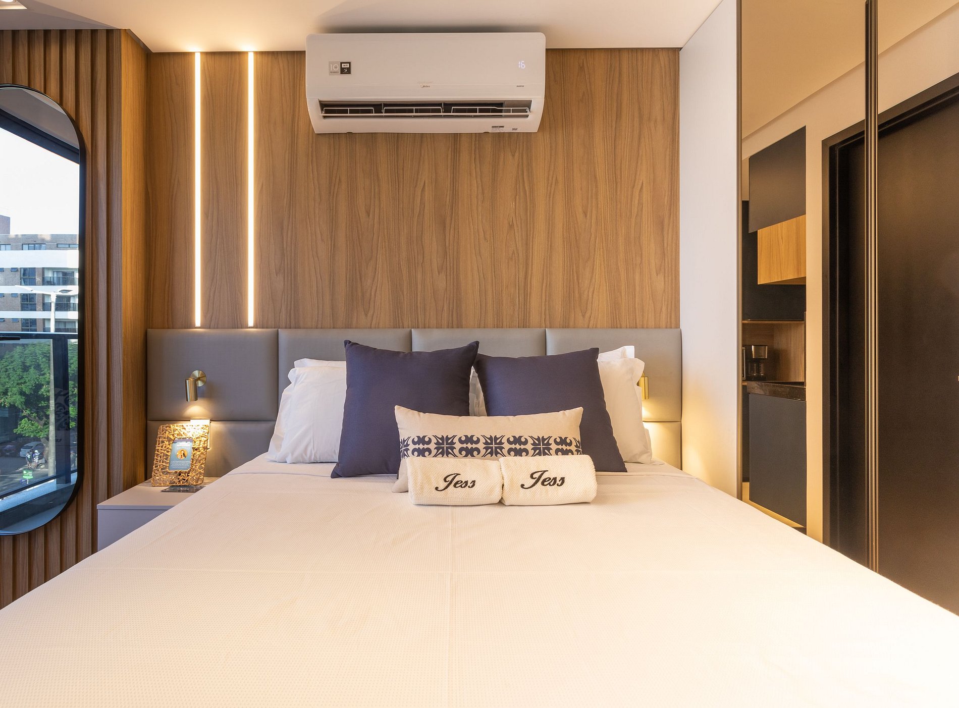 Aproveite a excelente estrutura do condomínio, que inclui piscina, academia, jardim, Wi-Fi gratuito e estacionamento rotativo. As unidades são completamente equipadas com ar-condicionado, cozinha moderna, além de banheiro privativo.
