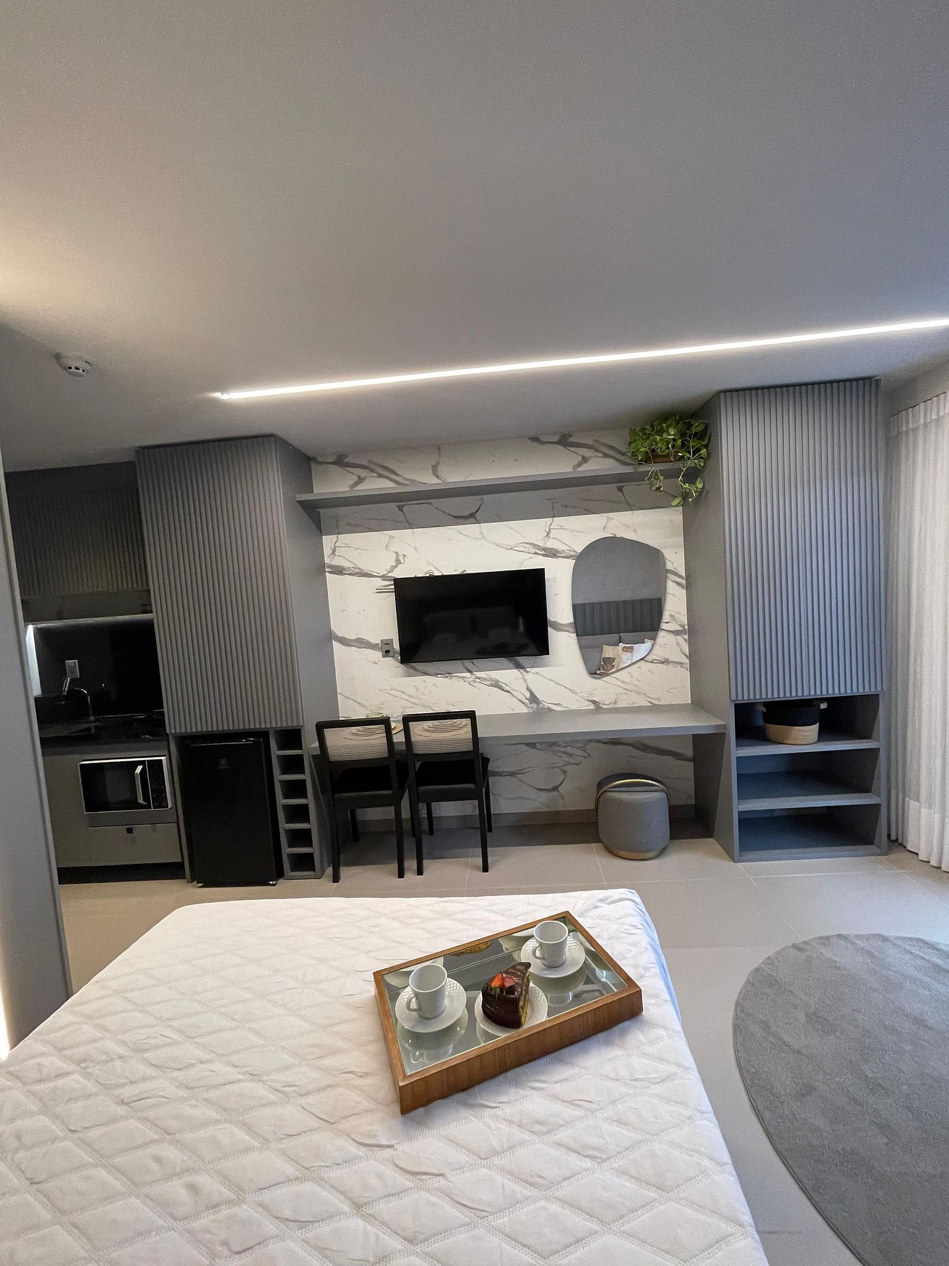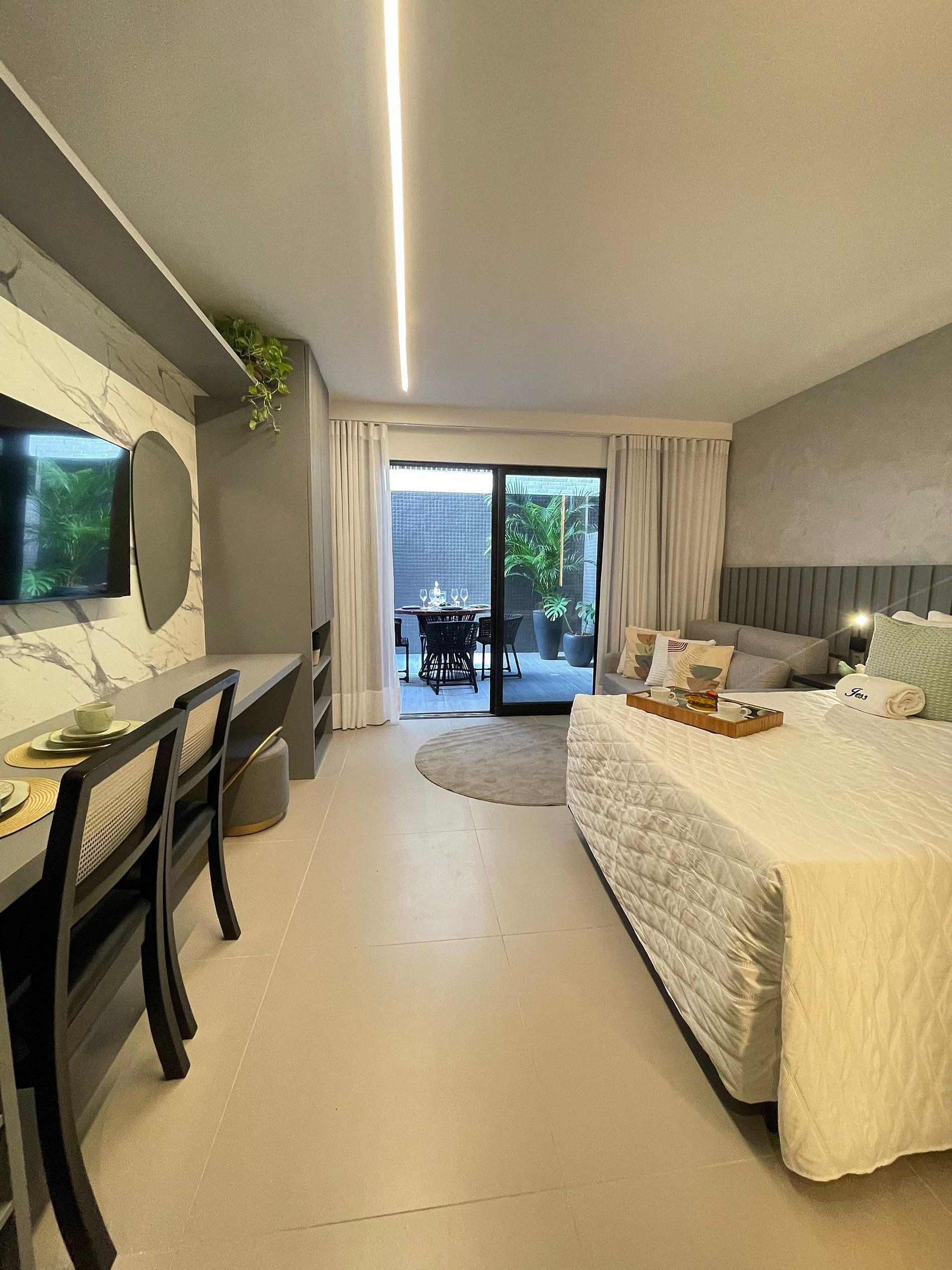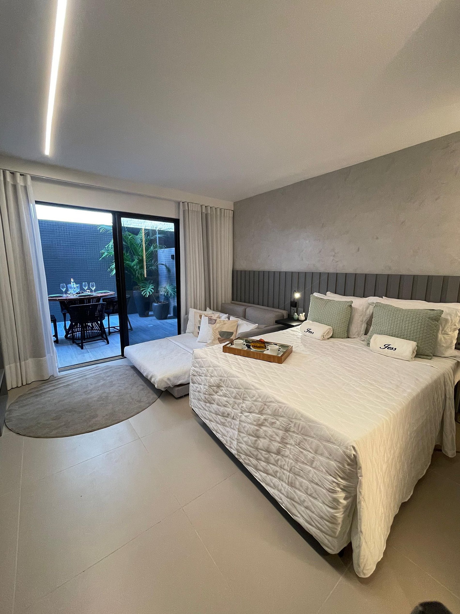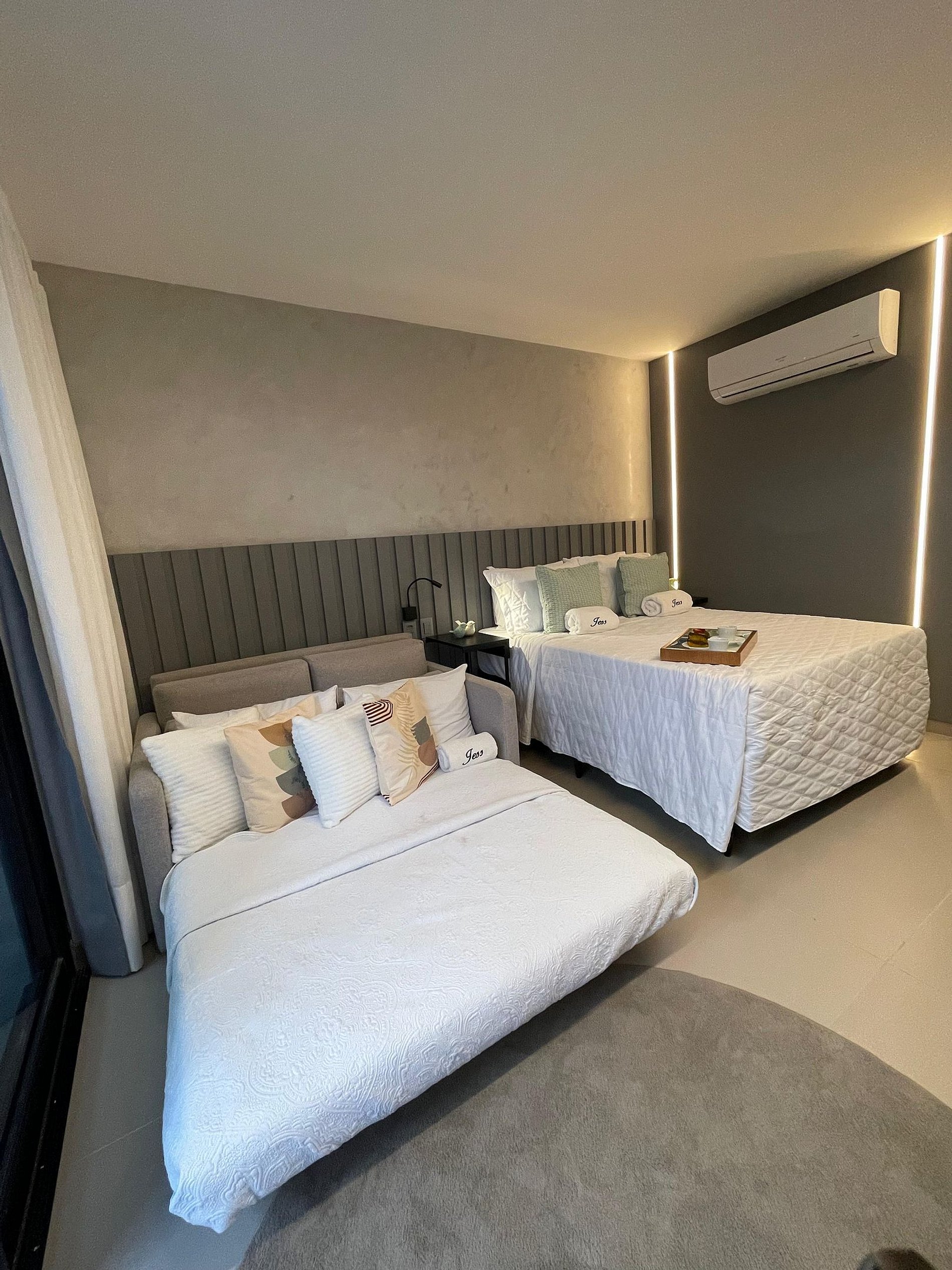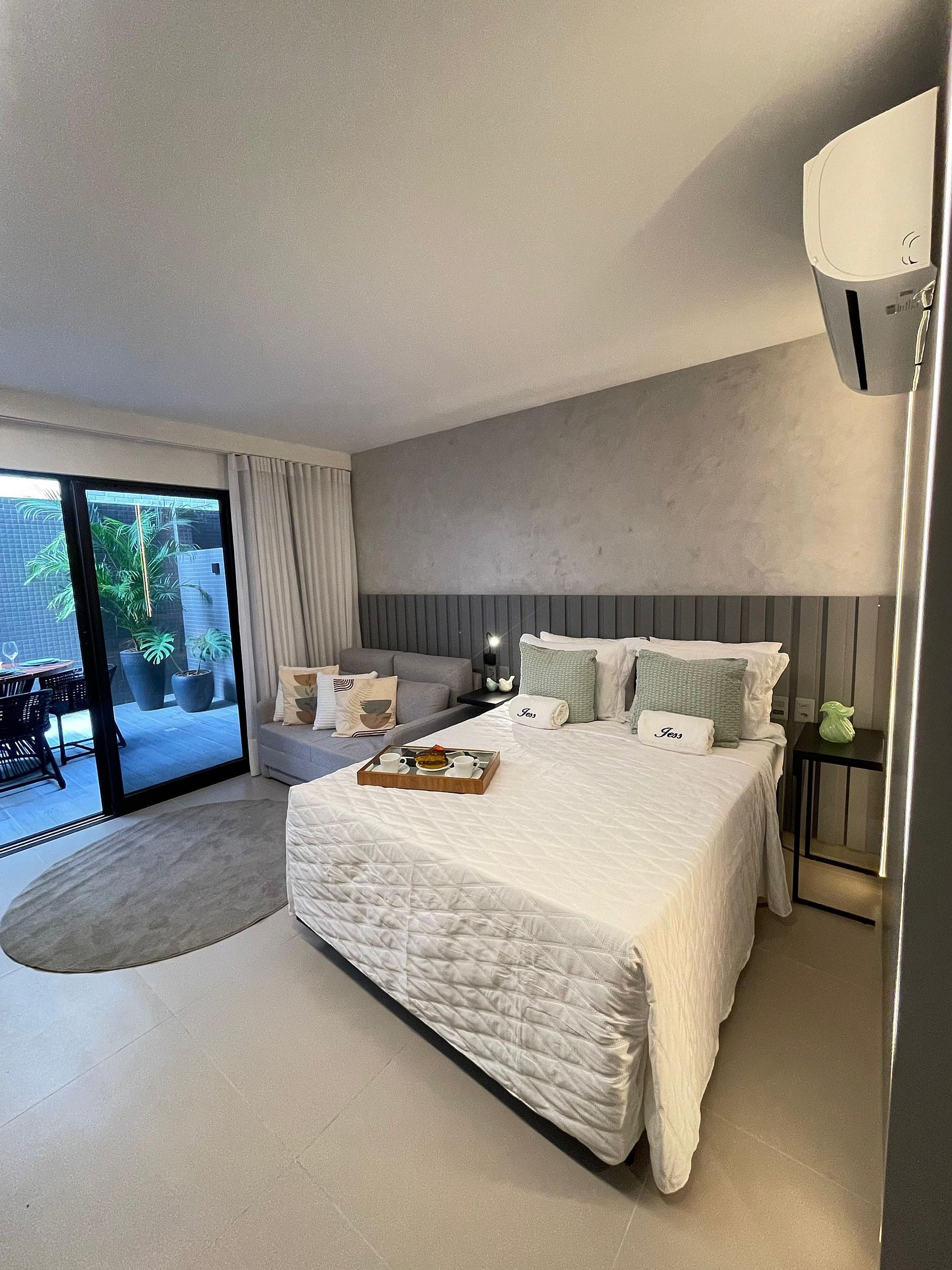 O apartamento é completo, com cama super confortável e sofá-cama e uma pequesna varanda. Cozinha completa com geladeira, cooktop, microondas, e todos os utensílios básicos, para preparar suas refeições. Oferecemos também enxoval de qualidade completos para todo o período de sua estadia. Apartamento completo para que possam desfrutar das férias sem preocupações. Com a Jess Hospedagens, você irá se concentrar no melhor de suas férias, que é aproveitar as belezas de João Pessoa e da Paraíba.
