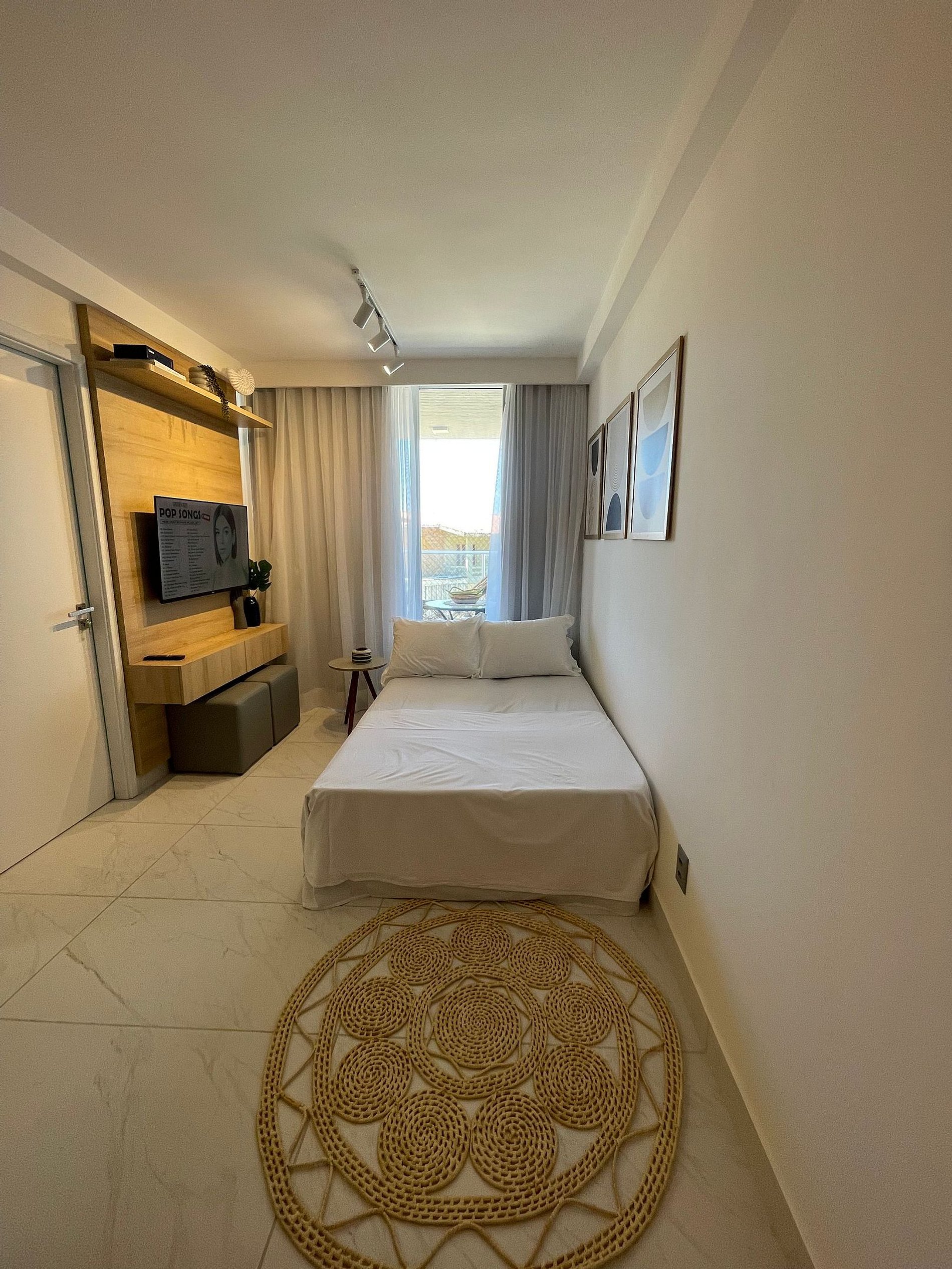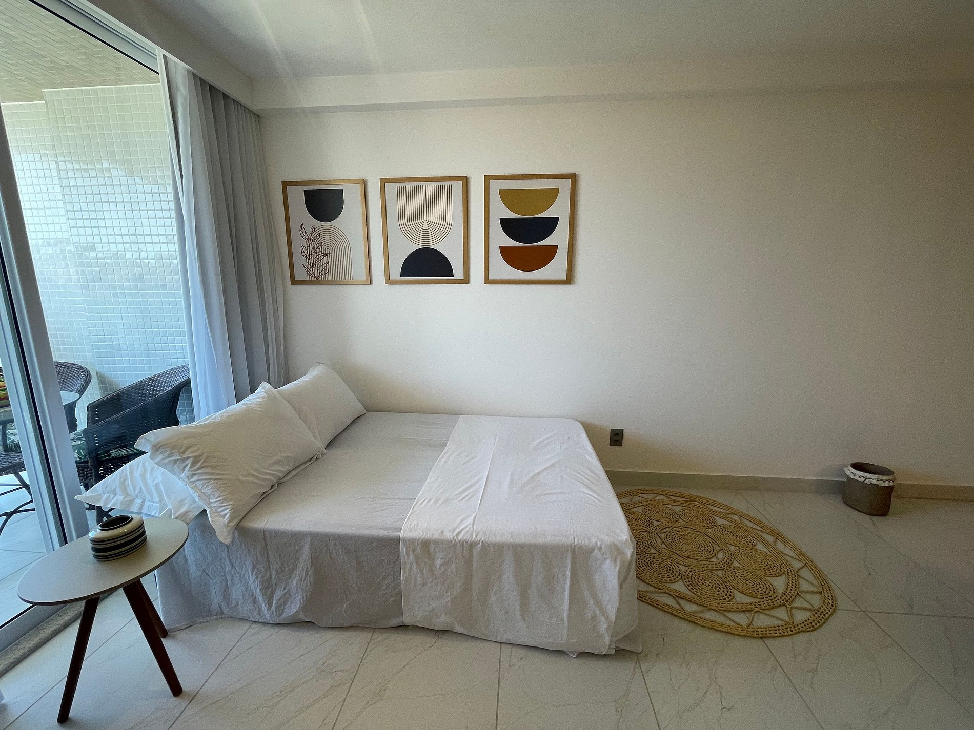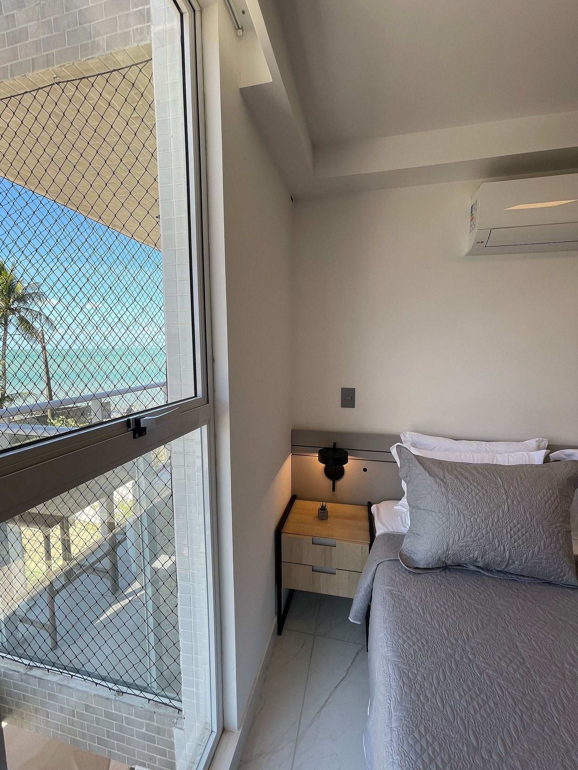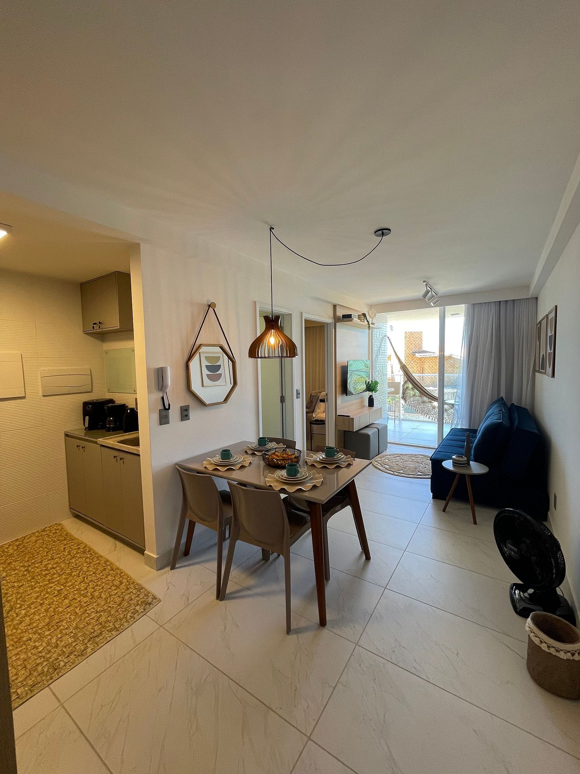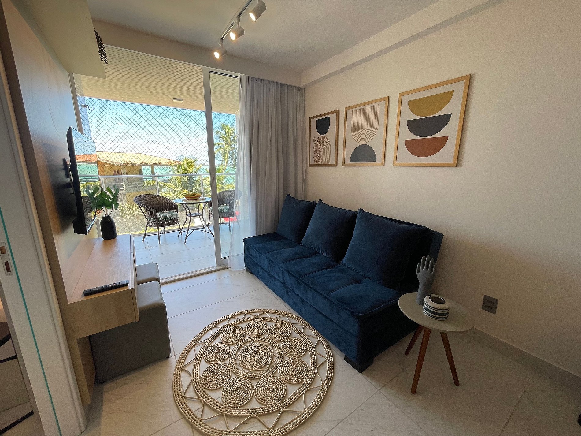 Aproveite a vista para o mar diretamente da varanda deste charmoso apartamento no Branco Haus. O espaço é bem iluminado e integrado, com sala e cozinha em conceito aberto. A sala conta com um sofá-cama espaçoso e confortável, TV Smart e acesso direto à varanda, que tem cadeiras e uma bela vista para a praia.