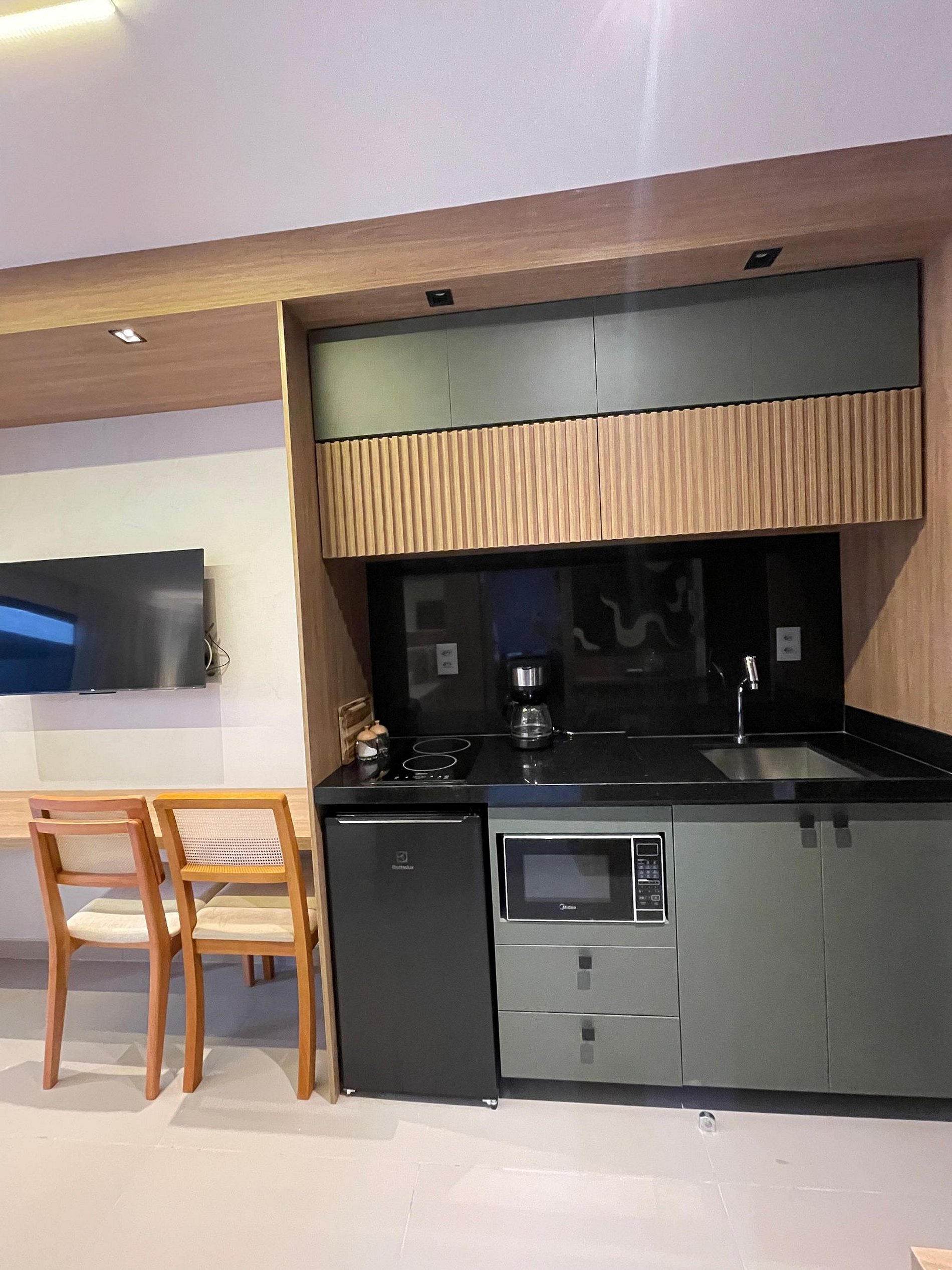 O apartamento é completo, com cozinha equipada (eletrodomésticos e utensílios) para preparar suas refeições com conforto.