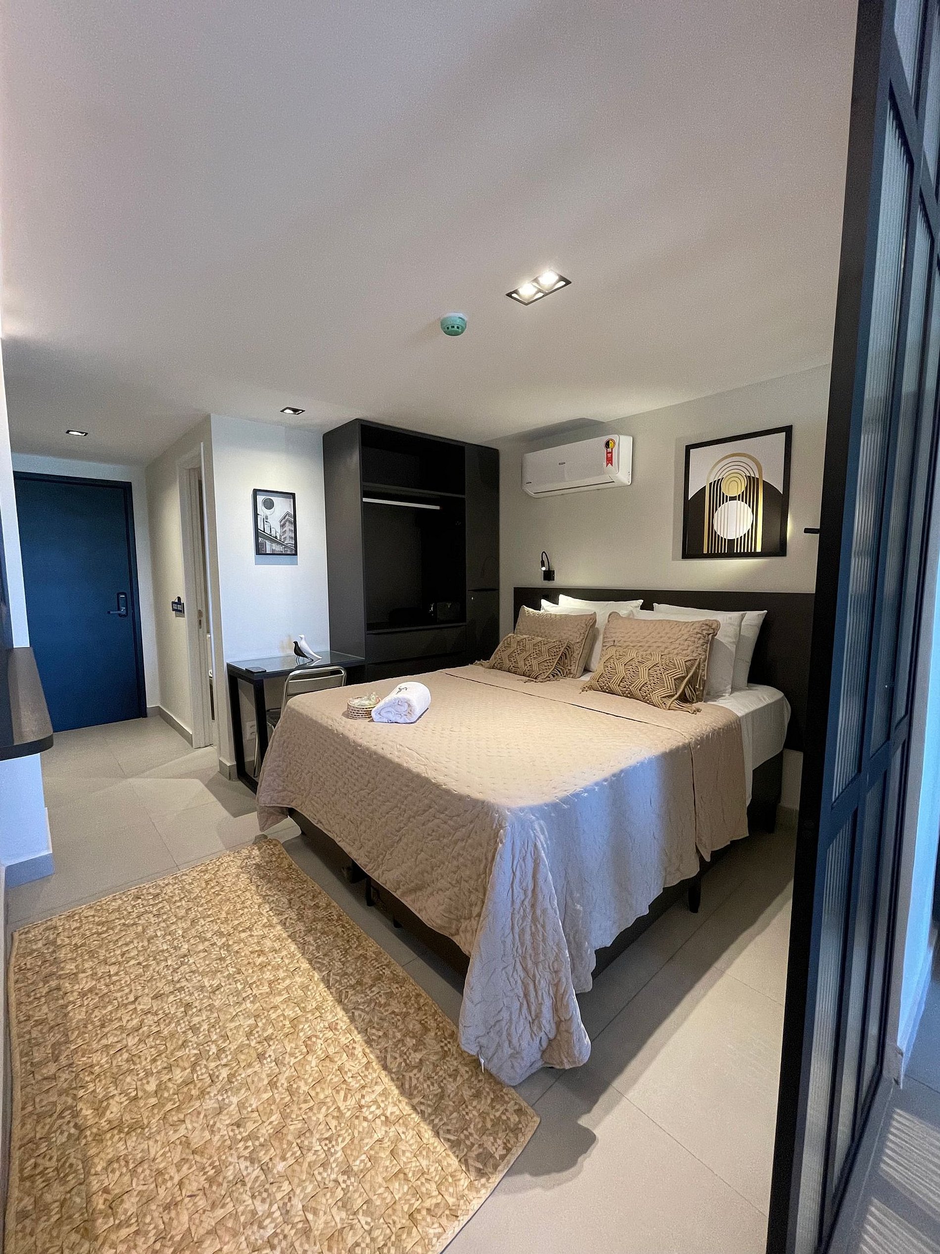 • Ambiente climatizado, funcional e acolhedor, com tons neutros e iluminação agradável.