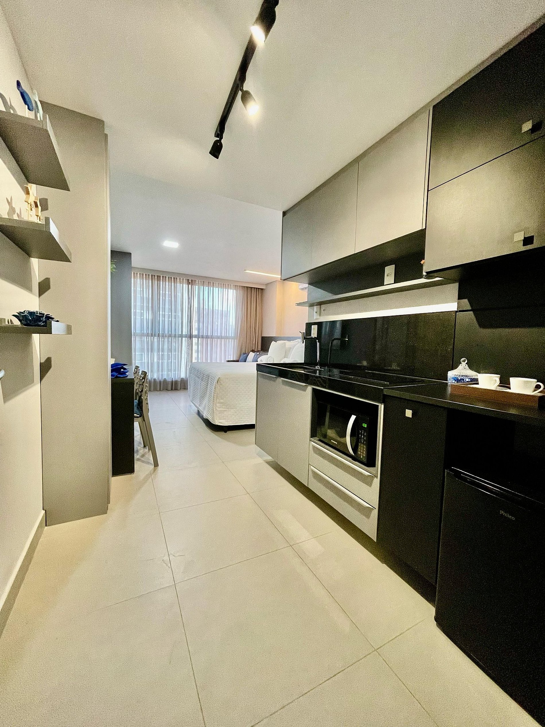 Aproveite a excelente estrutura do condomínio, que inclui piscina, academia, jardim, Wi-Fi gratuito e estacionamento rotativo. As unidades são completamente equipadas com ar-condicionado, cozinha moderna, além de banheiro privativo.