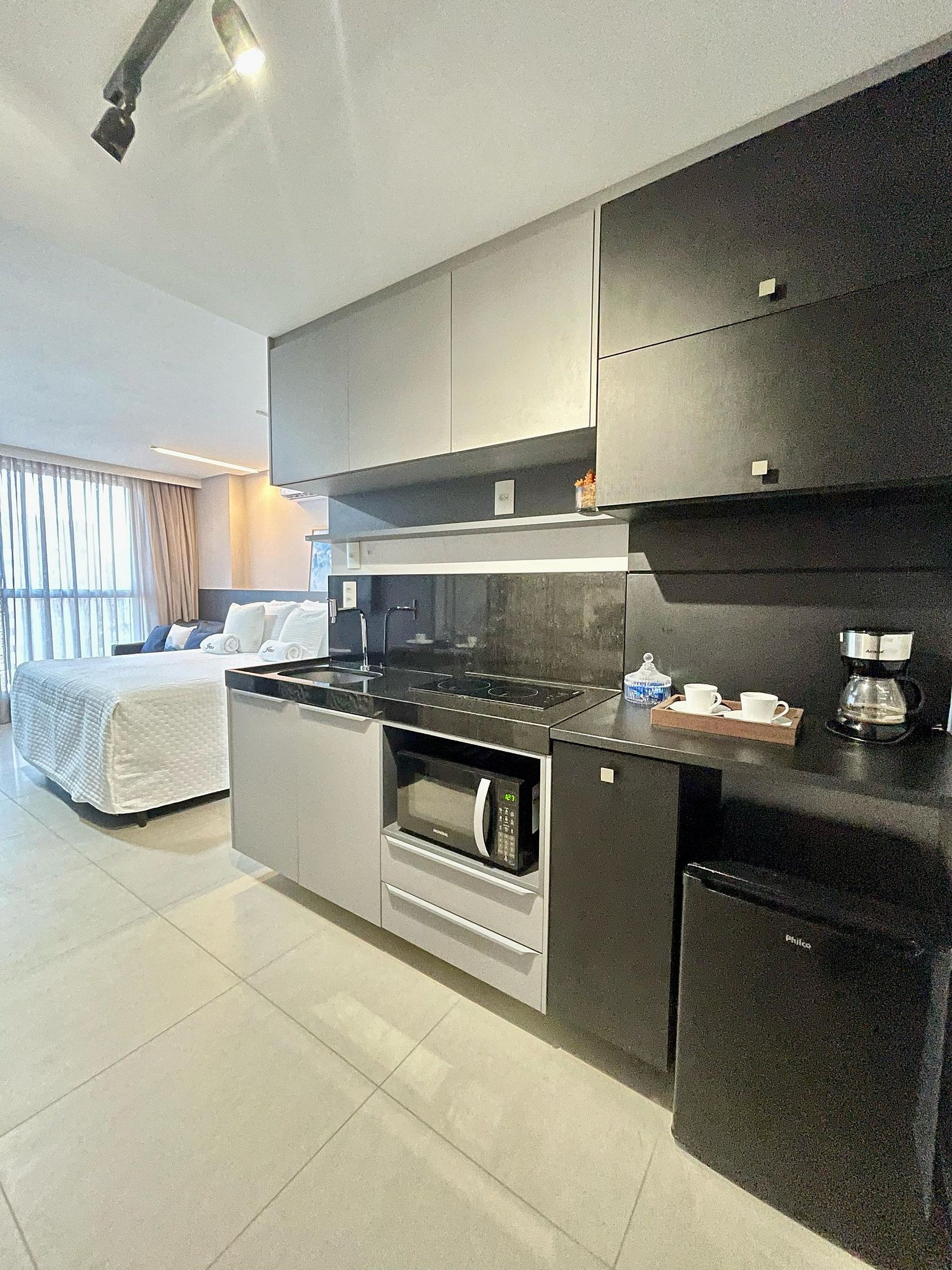 Aproveite a excelente estrutura do condomínio, que inclui piscina, academia, jardim, Wi-Fi gratuito e estacionamento rotativo. As unidades são completamente equipadas com ar-condicionado, cozinha moderna, além de banheiro privativo.