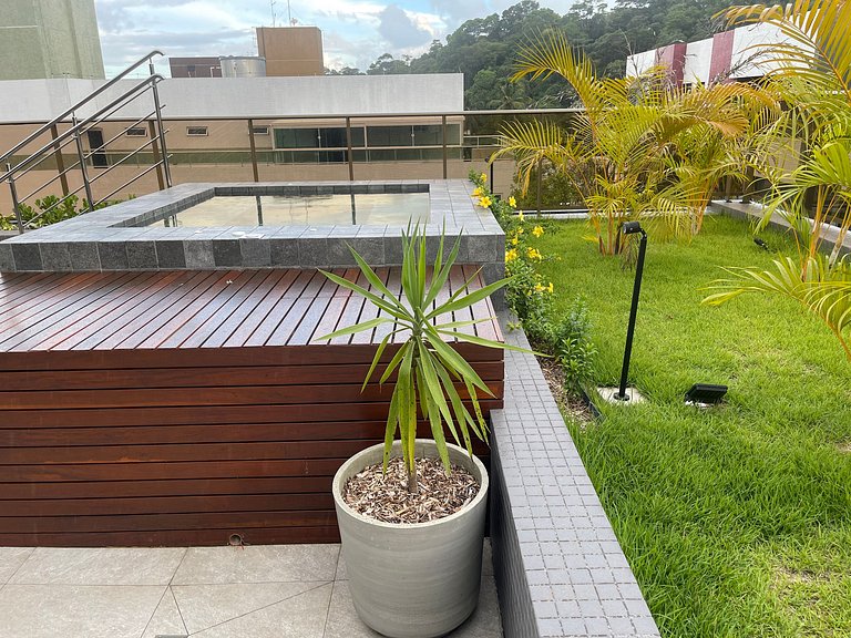 - Área de lazer incrível na cobertura com piscina aquecida, 3 jacuzzis, bancada gourmet e com uma vista maravilhosa da cidade e da praia.